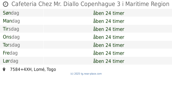 | Tirsdag | åben 24 timer | |||||